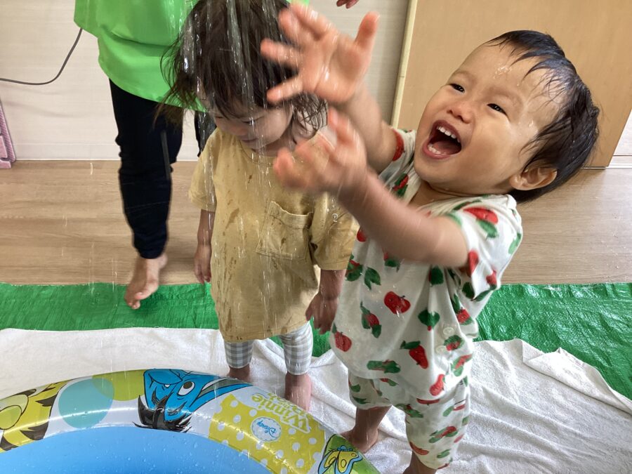 五感を刺激しながら、水の感触や冷たさ、気持ち良さをご機嫌で楽しんでいます😄