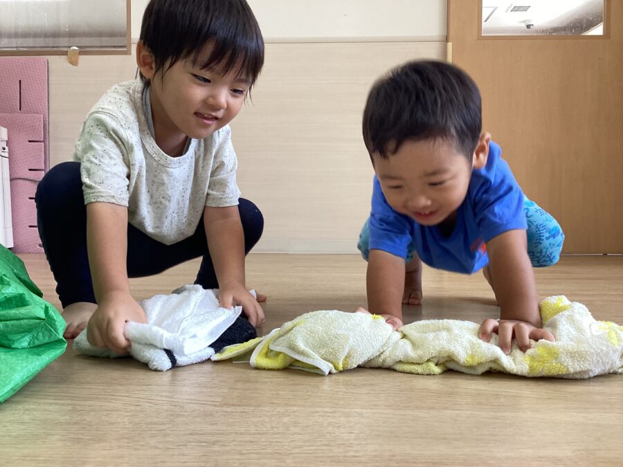 水遊びの後は、お片付けもしてくれたひまわり組さん🌻