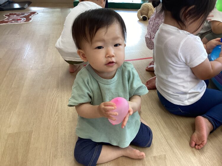 水風船は感触が気持ちよくて、にぎにぎして楽しむお友だちが沢山いました😄にぎにぎしすぎて、割れることもありましたが、それもまた楽しくて、みんなで大きな声で笑い合っていました😆
