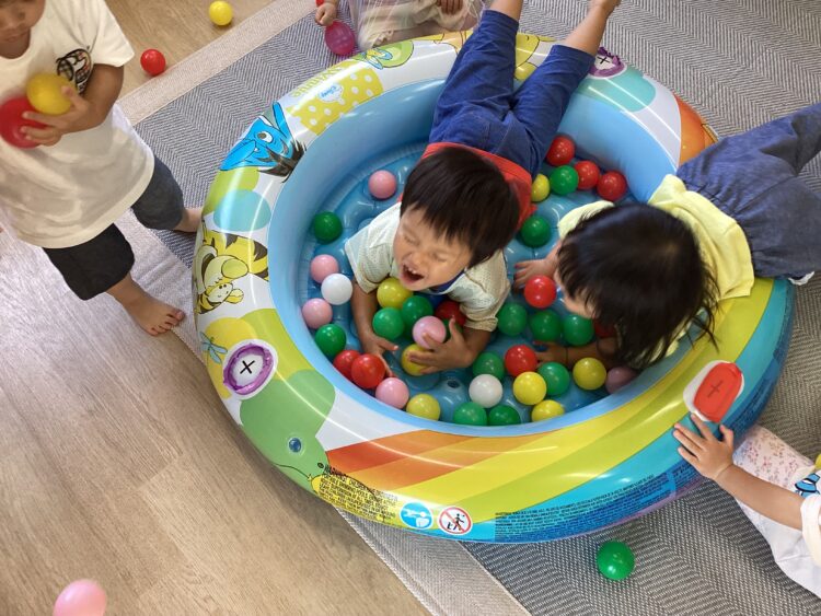 ボールプールを用意すると、「わーい🙌」と飛び込んで楽しんでいましたよ🥰