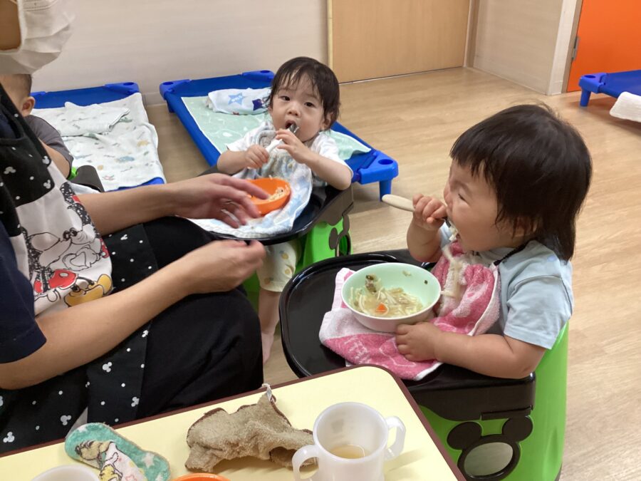 園に戻るとお腹もペコペコ‼️大好きなうどんをモグモグ食べていましたよ😋