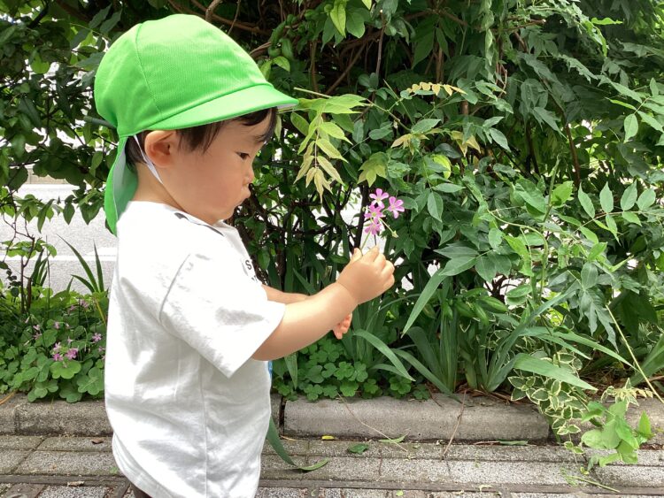 お散歩にでかけたお友だちは、アジサイなどの草花に触れてご機嫌でしたよ