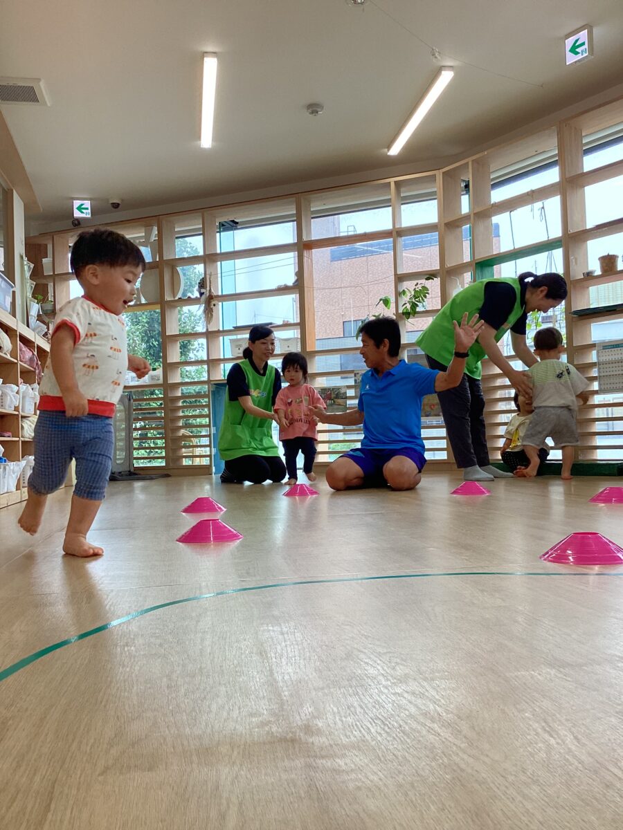 コーンの周りを走って、先生にタッチ🖐️