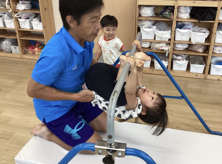次は鉄棒でコアラさんに変身🐨横向きにぶら下がります。