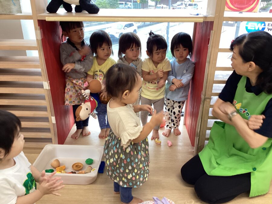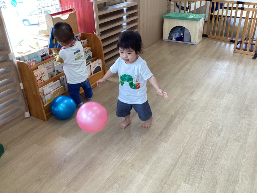 たんぽぽ組さんはポットン落としをして指先を使ったり、体を思い切り動かして、ボール遊びをしました😄
