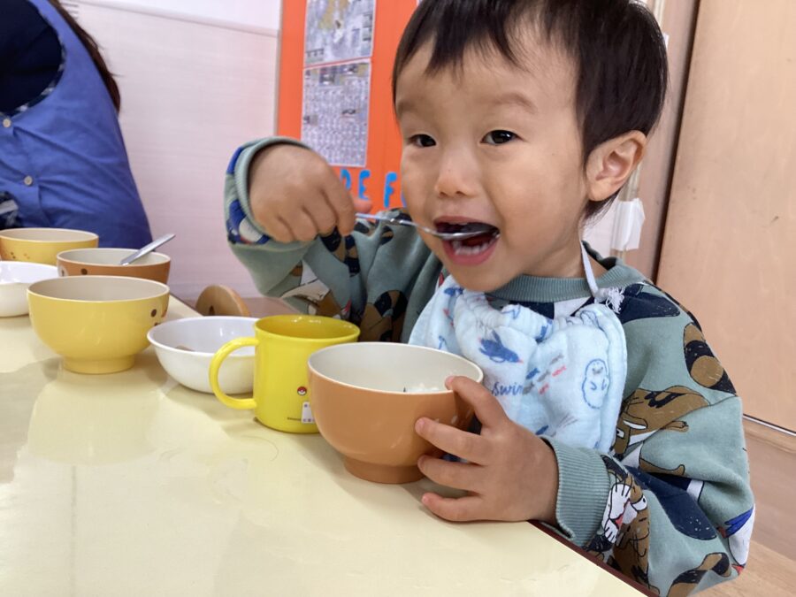 またおやつは「七草がゆ」でみんなの無病息災を祈り、美味しくいただきました![]()