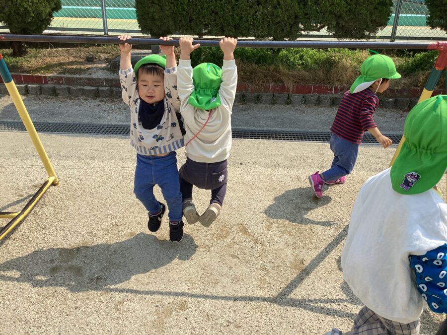 「みて~!!」と両手をうーんと伸ばして、ぶら下がったり、