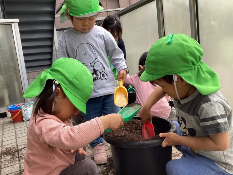 「美味しくなあれ」「げんきになってね(育ってね)」と願いを込めながら植えてくれました😄