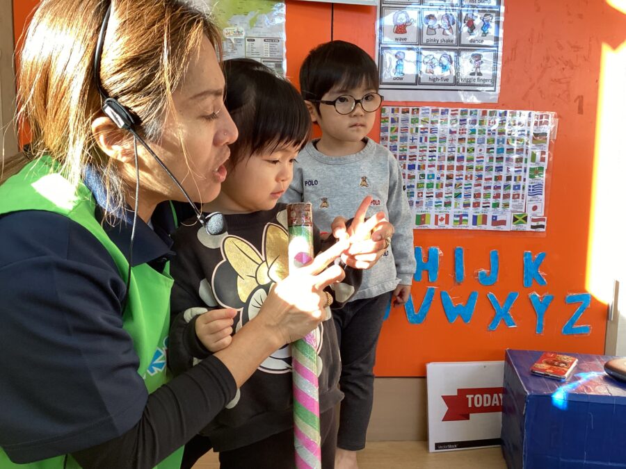 カレンダーの数字を見ながら31まで歌をうたったり、”Right ” ”Left”と手洗いの歌をうたったり、、🎵