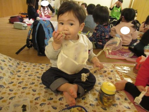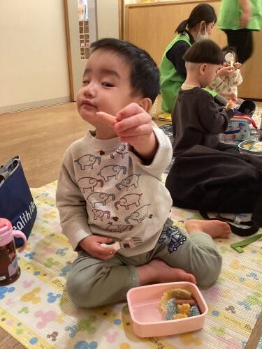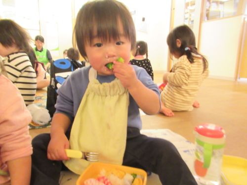ひよこ組のお友だちも自分で食べたいものを手に取った入りフォークで指して美味しい💖と笑顔を見せてくれながら食べていましたよ