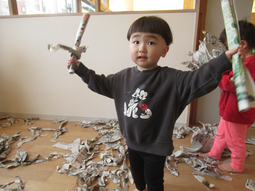 ひよこ部屋では新聞紙あそびをしました✨