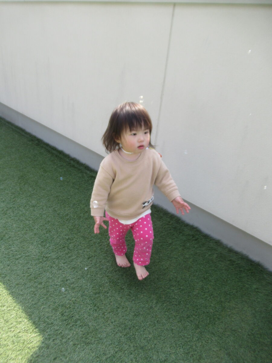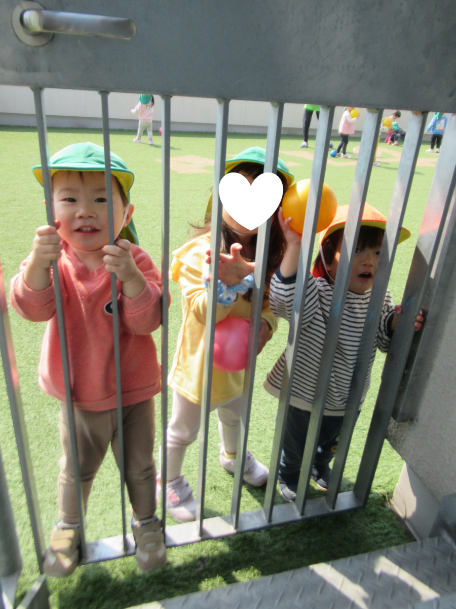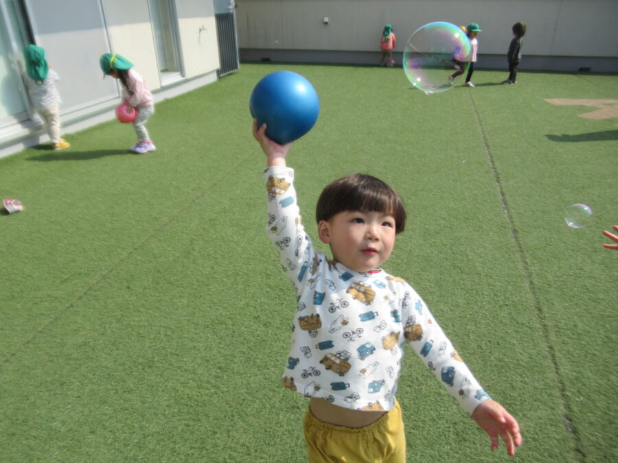 シャボン玉遊びも行いました。ボールでシャボン玉を壊そうとするお友だちも😀