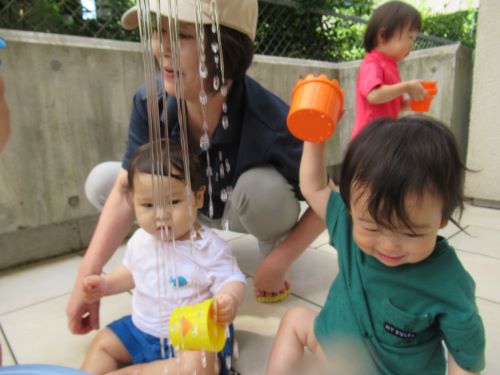 子どもたちからも雨やって!もっかいもっかい!と人気な水遊びです![]()