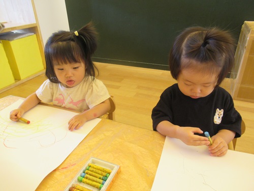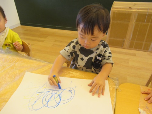 今日はお絵描きをしました🖍クレヨンを使って描いてみるよ!と先生のお話を聞いています!みんな興味津々ですね!