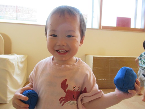 片手に一個ずつ玉を持って、ニコニコ嬉しそうです😀💕