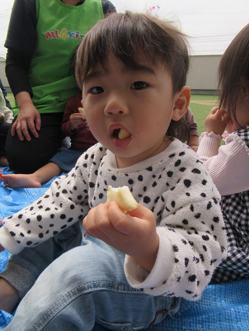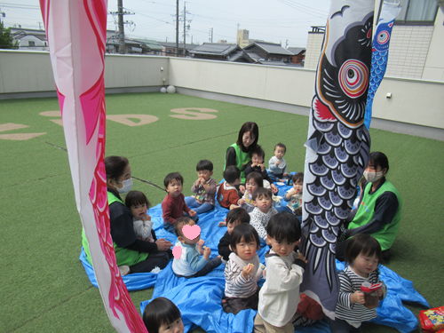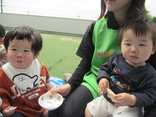 今日はみんなで朝のおやつを屋上園庭で食べました⭐