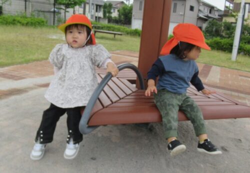 はじめて城田公園に行くお友だちは、いつもと違う行き先にドキドキわくわくしている様子🤭