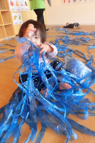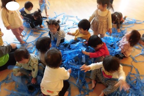 今日はお部屋でスズランテープ遊びをしました![]()