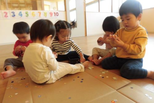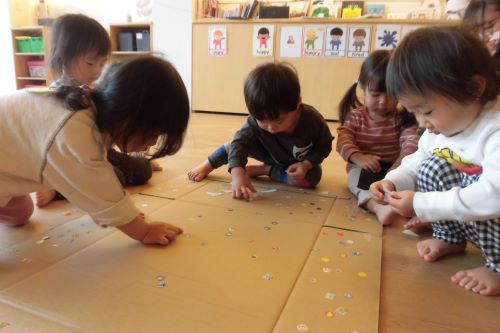 先生やってー!ではなくみんな集中して自分でシールをはりを楽しんでました
