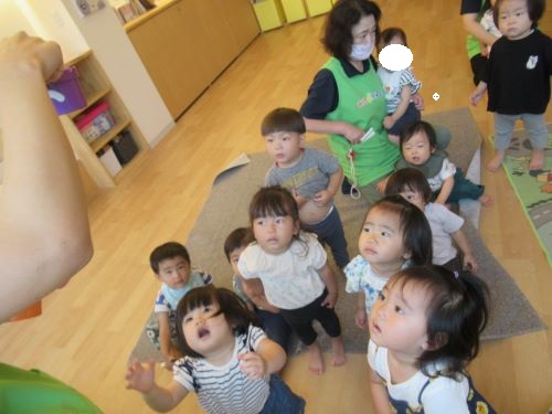 ひよこ組さんも合流して一緒にお話を聞いてから氷に触れて遊びました![]()