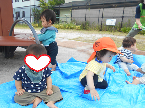 保育士がシャボン玉を出すと 皆じっと見つめていました。