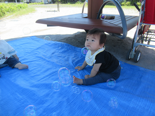 しゃぼん玉を目で追いかけたり、手を伸ばして掴もうとしたり😊