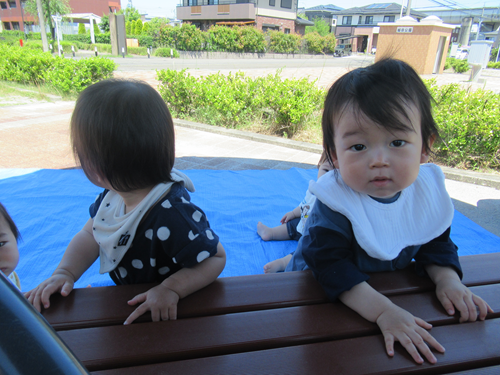 つかまり立ちをすると視界が広くなり、とっても嬉しそうな様子のお友だち💕
