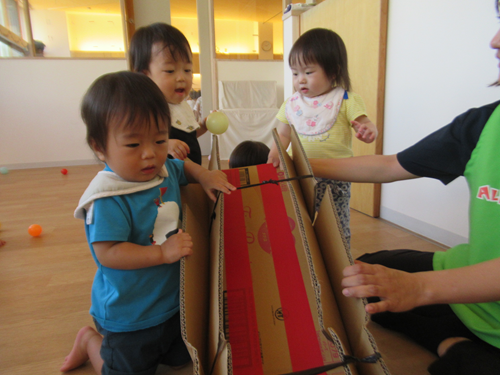 ボール遊びでは、掴んだり、投げたり、転がしたりと思い思いに楽しむ姿がみられました✨