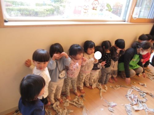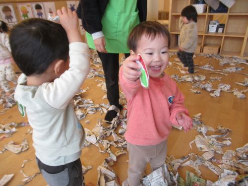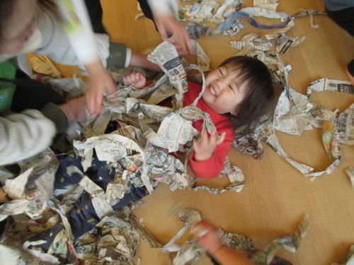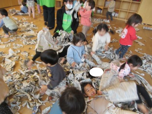 前回使った破れている新聞を出すとたくさんになった新聞で子どもたちは大盛り上がりでした![]()