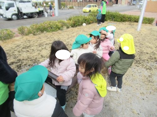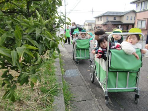 城田公園を過ぎた先にミカンの木があって下にたくさんのミカンが落ちているのを見て子どもたちもビックリ😲いっぱーい!食べれないねー、といろんなお話をしていましたよ![]()