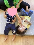 マットの上に寝転んで、お鼻をピッ!ほっぺをピッ!お腹をピピピッ!と先生と遊んでいると“私もー!!”とみんな集まってきましたよ😊