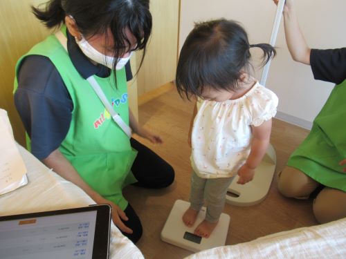 お部屋へ戻ってからは身体測定のやり方を見せ順番に行いました。
