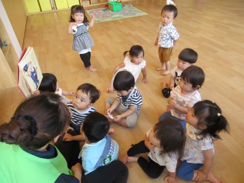 休憩をはさんでからはおもちゃを出そうと思いましたが、車みたいや歌聴きたいと子どもたちからの声があり給食まで見たい子は集まって一緒にシアターを見ながら歌っていましたよ![]()