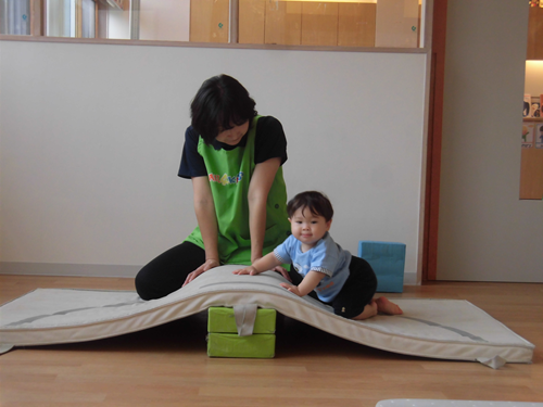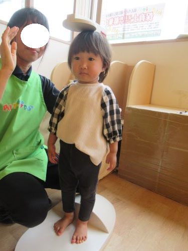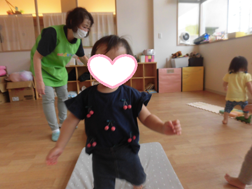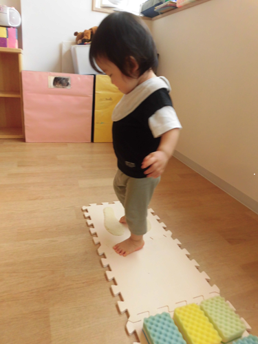 このお友だちは感触マットの足型が気になって しばらくの間踏んだり