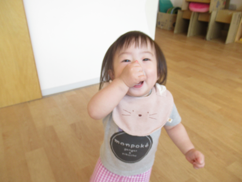 「だるまさんが ぷっ!」のところでは鼻をつまんでいます!
