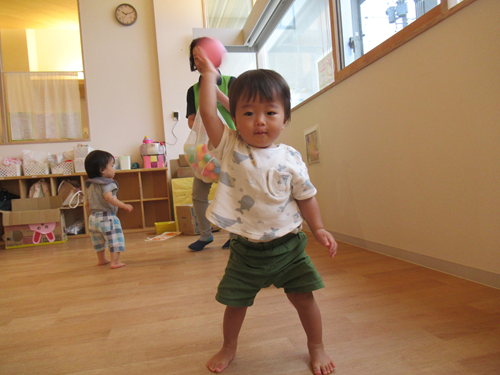このお友だちはボールをキャッチして投げようとしています。