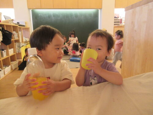 お友だちにジュースを注いであげている様子も😄