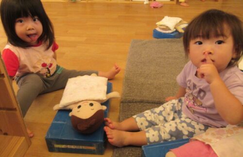 お人形に手をのせて、トントンしながら寝かせてあげている様子がとっても可愛かったです!