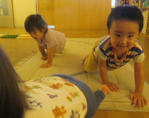 マットで寝転がったり、ハイハイをして身体を動かしました😄