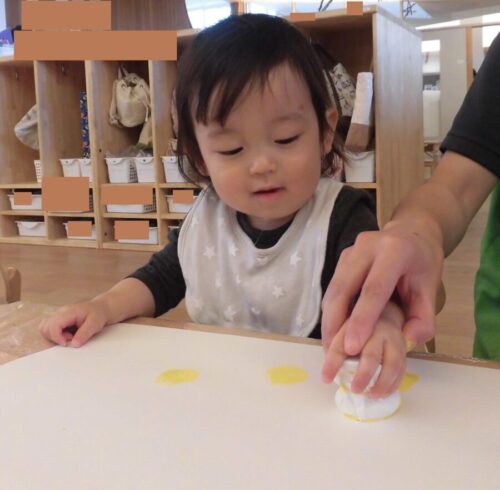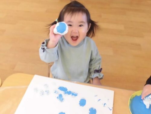 興味を持って取り組むことができ、画用紙にスタンプがつくと嬉しそうな笑顔がみられました😆🎵