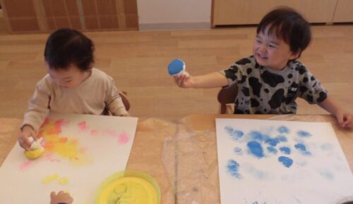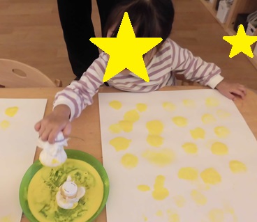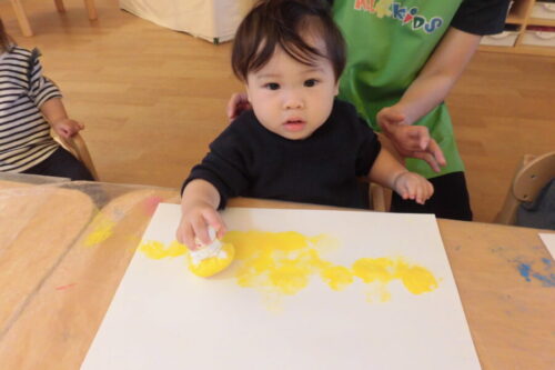 やり方が分かると自分で絵の具をつけて描いている様子がありました✨