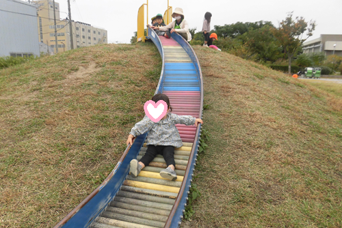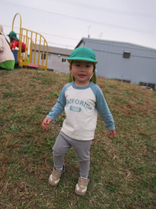 保育士と一緒に駆け下がると嬉しそうな笑顔が見られました🎵