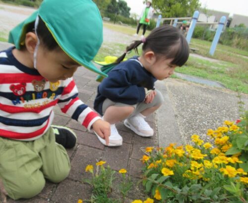 公園で黄色いお花を見つけてじっと観察しています👀✨