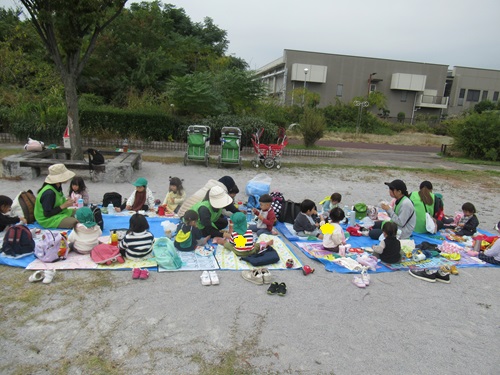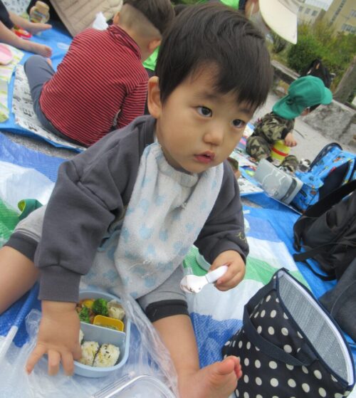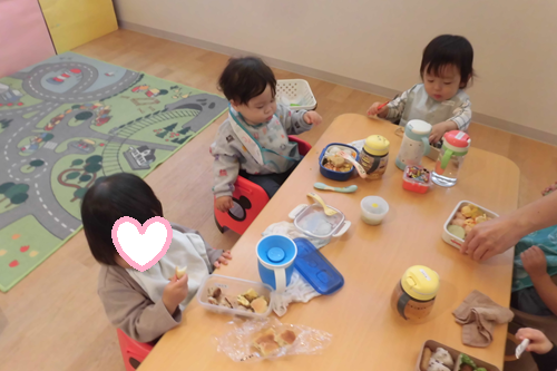 ひよこぐみは保育園に戻ってお弁当を食べました。