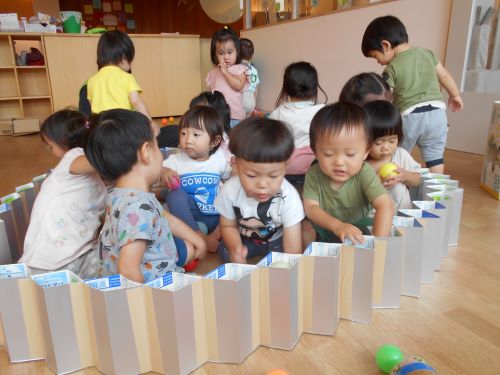 はじめのころは先生が遊んでいたのを子どもたちがまねして遊んでいたのが、今では自分で遊び方を見つけて遊んでいます😄✨