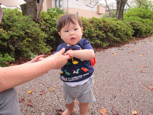 歩けるようになったこのお友だちは 保育士に手を持ってもらい