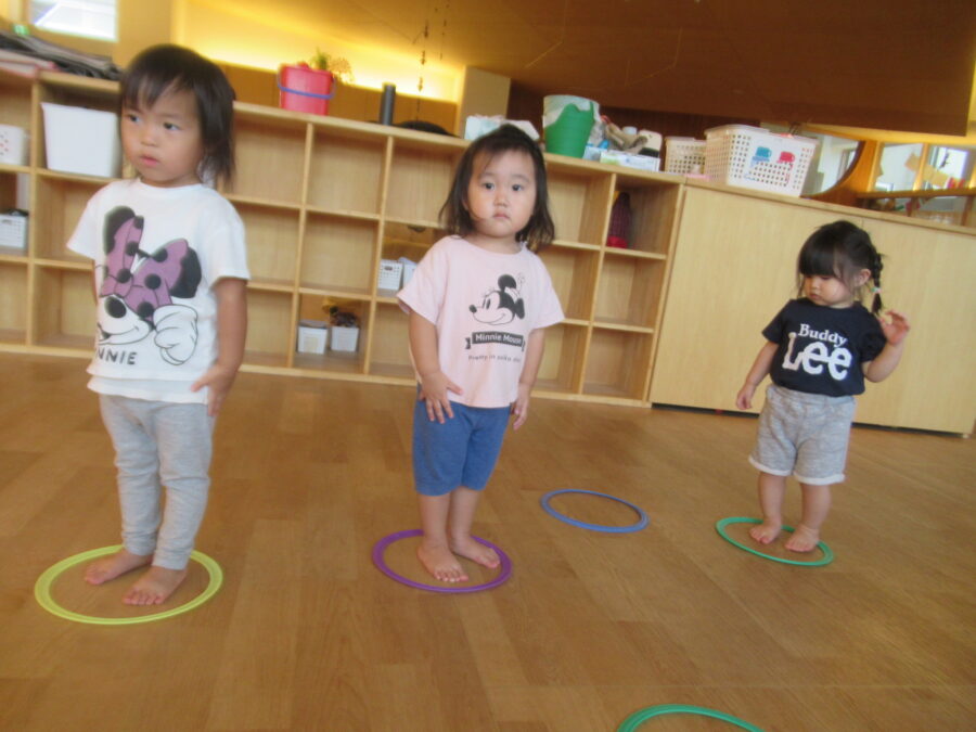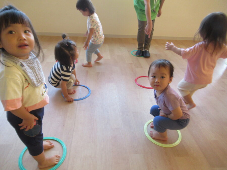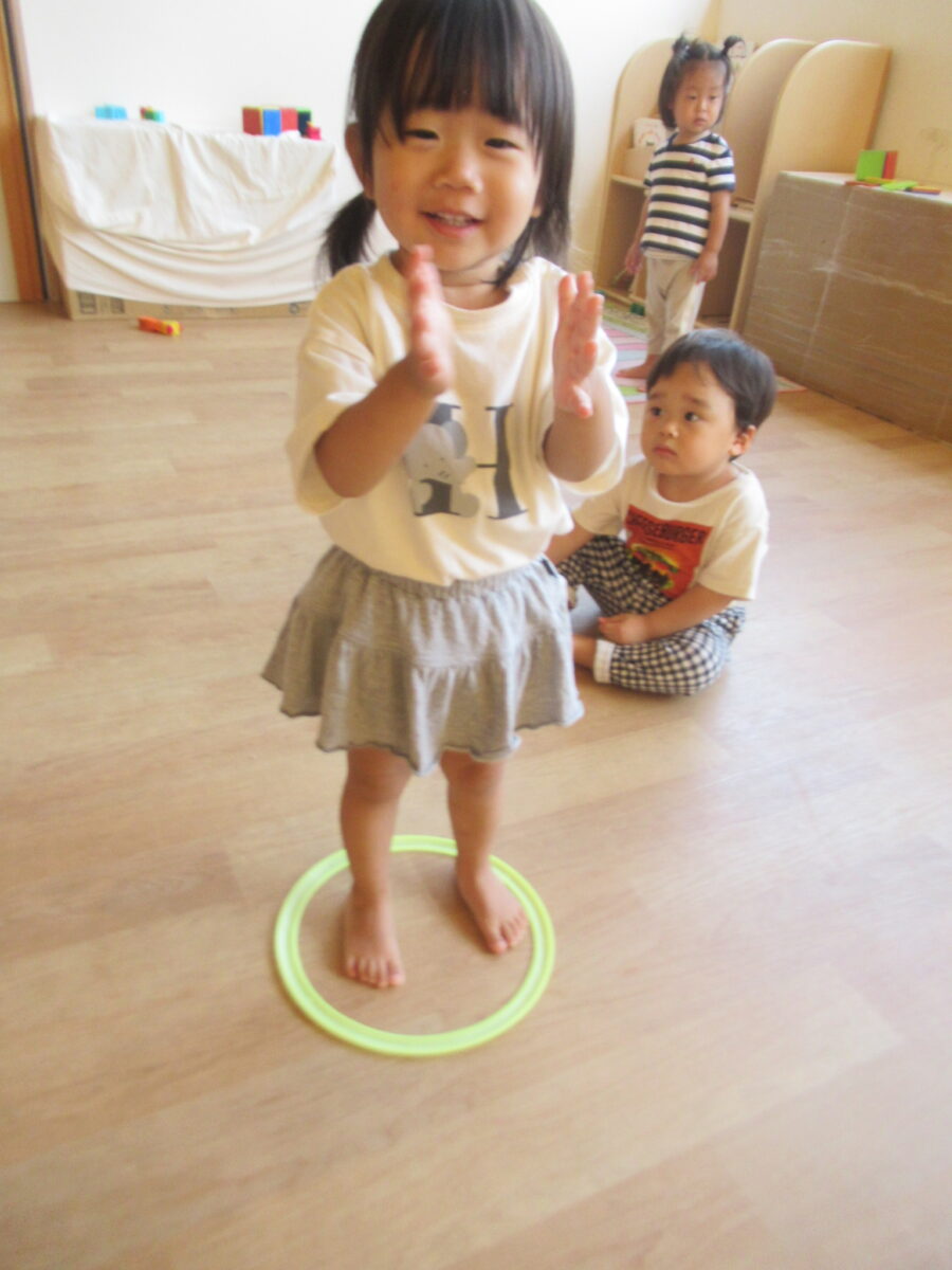 輪っかの中に上手に入ることができて「できたね!✨」と先生に褒められて拍手していると、一緒になって嬉しそうに拍手してくれていましたよ🥰