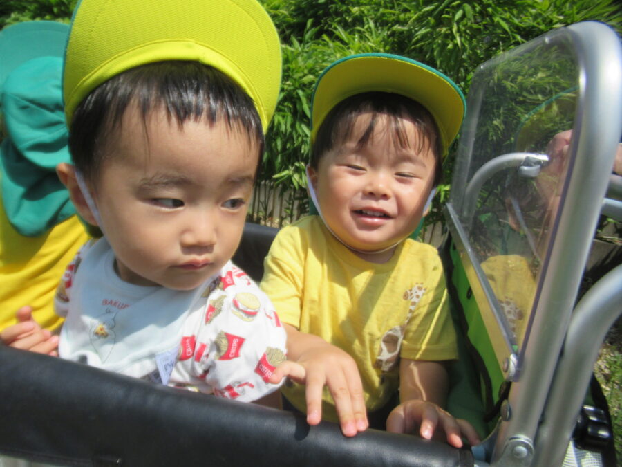 緑道に咲いている色とりどりのお花やちょうちょうを観察しながら行きますよ🎵移動中もこの笑顔です☺