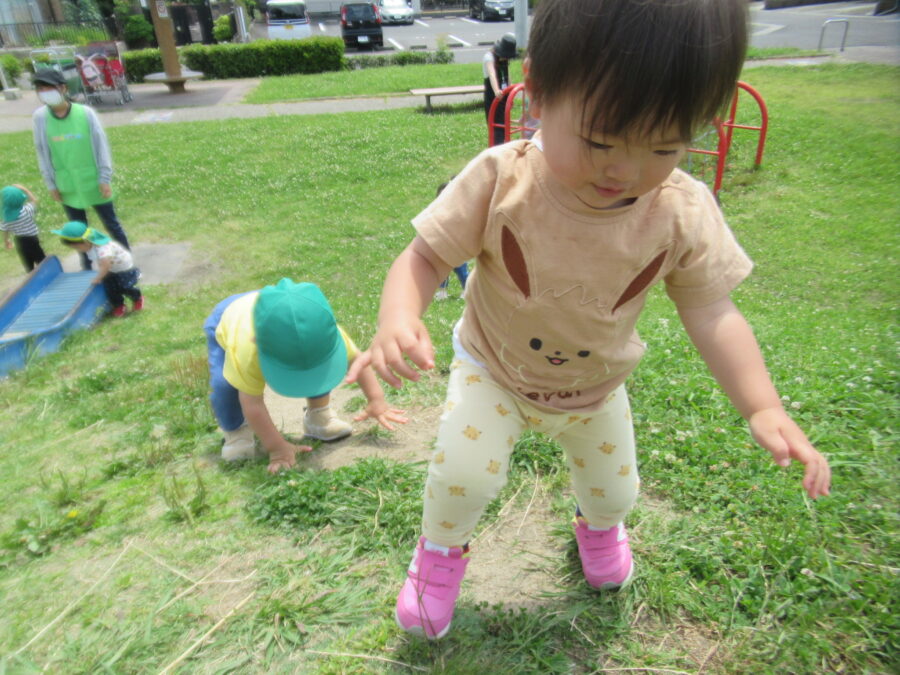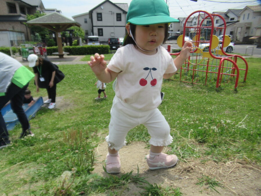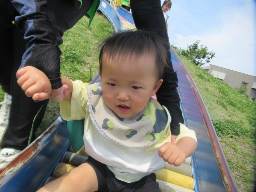 すべりだいが楽しくて、何度も芝生の山を登っていましたよ😄