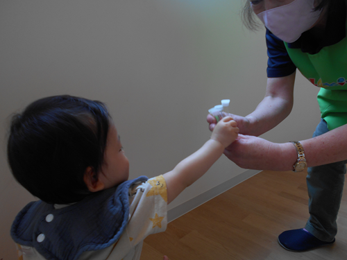 一回目滑り終わったときはキョトンとした表情でしたが「もう一回やる?」と聞くと、楽しかったようで、もう一度滑り台に挑戦しに来てくれましたよ✨